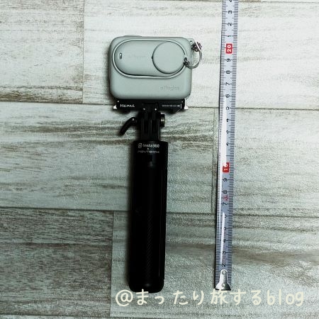 【Insta360 GO3】にミニ自撮り棒をセットしても、わずか278gという軽さです。