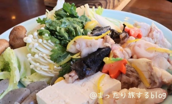 野菜もたっぷり。雑炊セット(ご飯と卵)付で、60代夫婦にはじゅうぶんなボリュームでした。