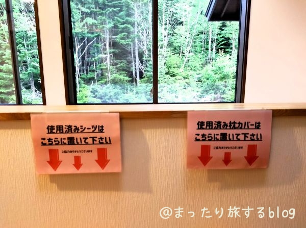 (使い終わったシーツと枕カバーは翌日、廊下の所定場所に出しておきます)